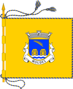 Escudo de azul, duas rodas de azenha de ouro, realçadas de negro, saíntes de campanha diminuta ondada de prata e azul de três tiras, em chefe, palma de ouro posta em banda. Coroa mural de prata de três torres. Listel branco, com a legenda a negro: "MOLDES".
